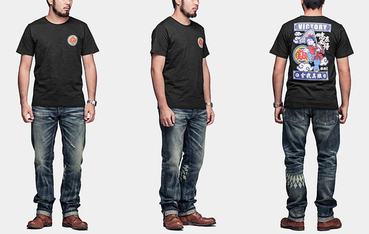 CARPTOWN ORIENTAL CHARACTER #I PLAY FOR KEEPS. CHARACTER PRINT ON BACK SHORT-SLEEVED T-SHIRT